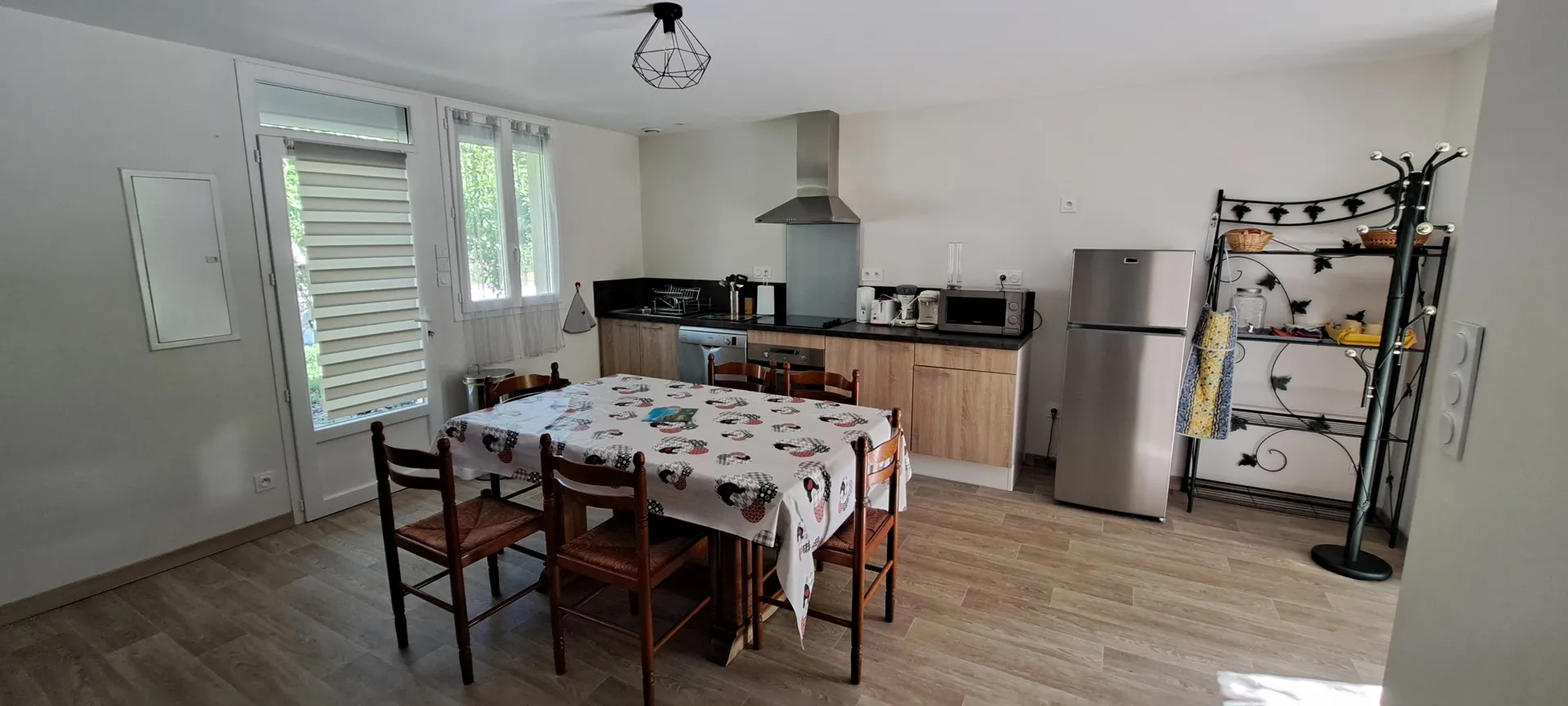 Meublé tout équipé dans maison mitoyenne entièrement rénovée située à moins d’1km du centre-ville dans un quartier calme.
